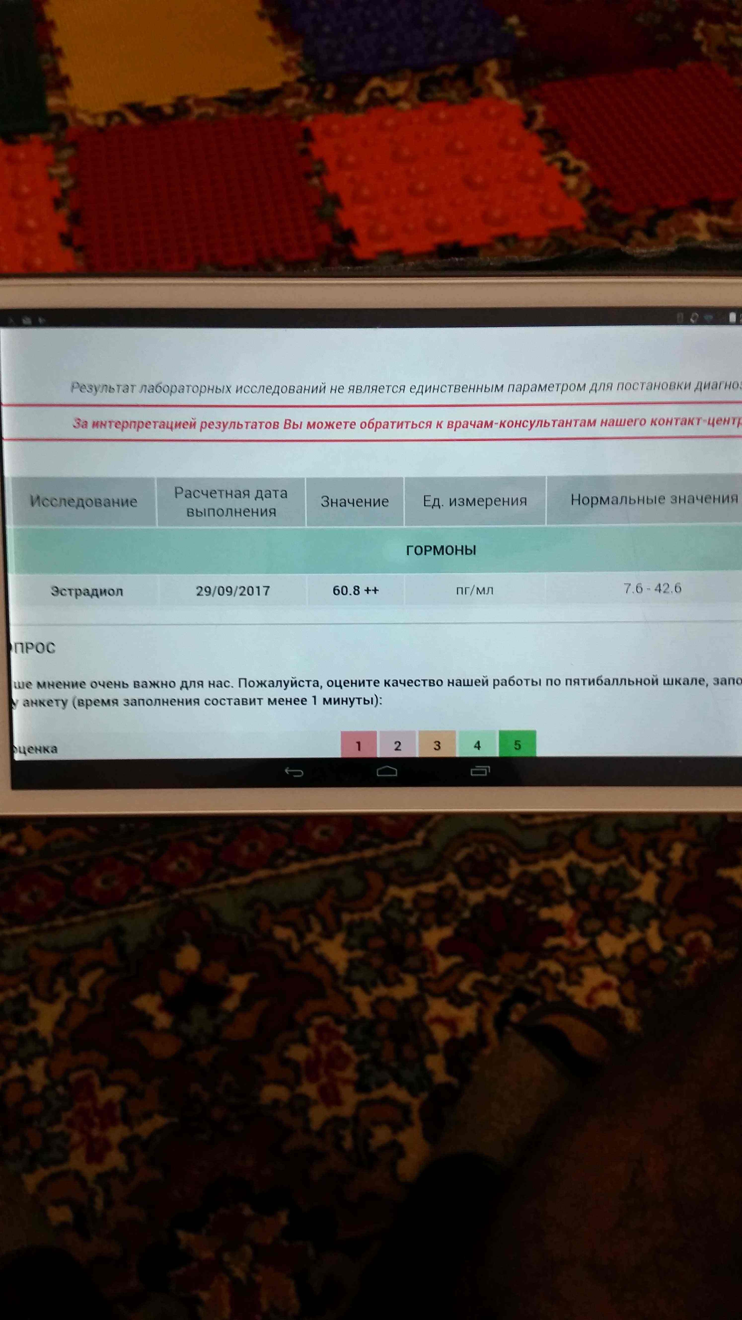 Посмотри пожалуйста. Начальный е2 117.6 ща снизился но в реферы не вошел. Пью по пол таблетке через день две недели, может пить по таблетке через день. Курс оксана-пропинат, 4 недели курса прошло, еще 4 недели осталось.