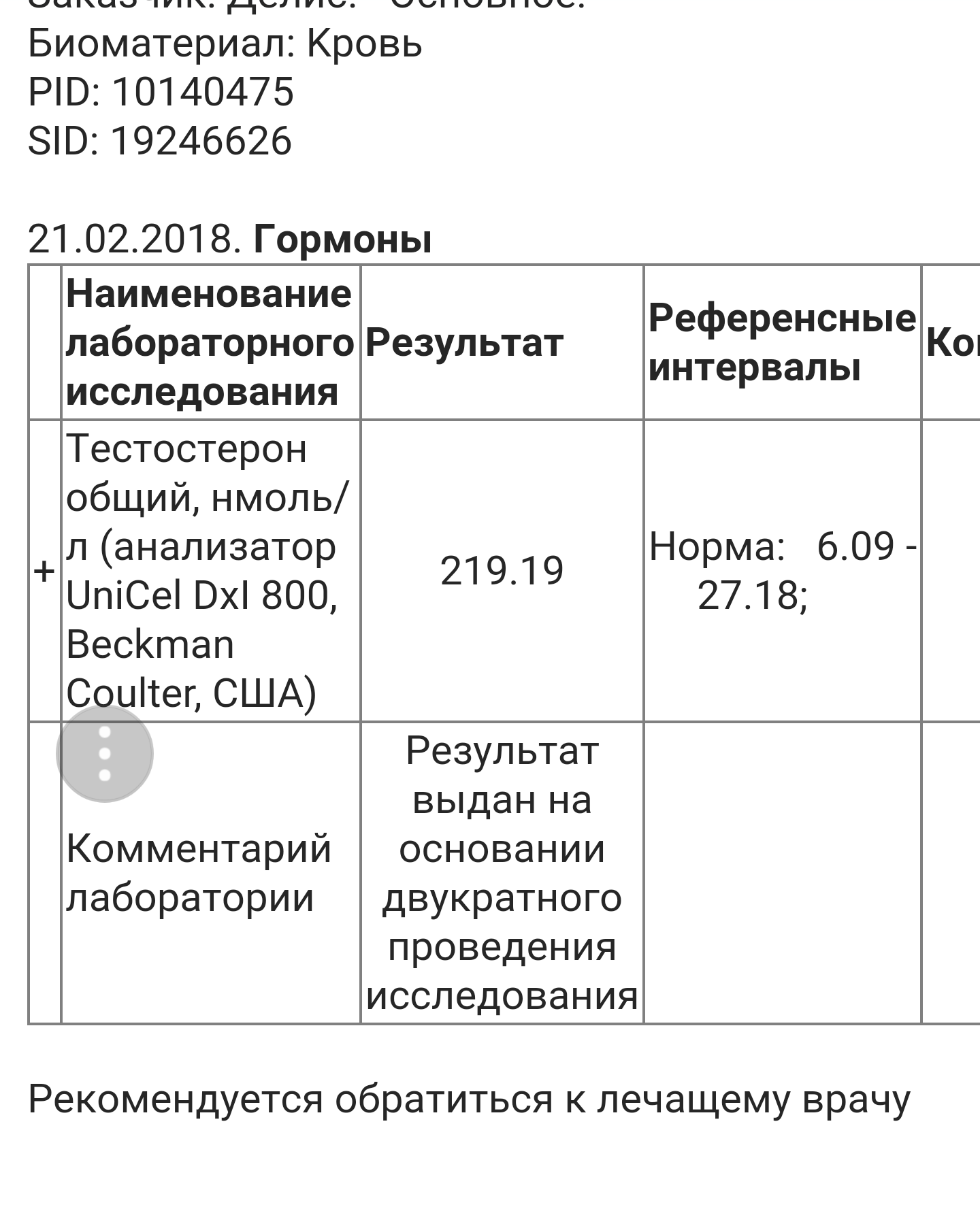 Анализы до, во время, после курса и пкт