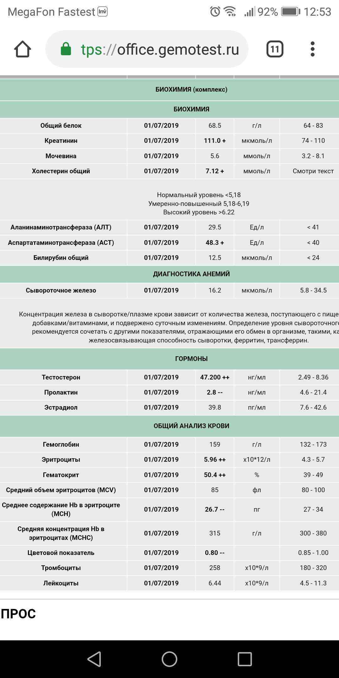 Скрин скинь,какие референсные значения Ванговать надо?Добрый день, Прошу помощи в подборе дозировки анастразола и нужен ли здесь каберголин. Идет 3 неделя курса 100 теста P+100 мастерон P через день.