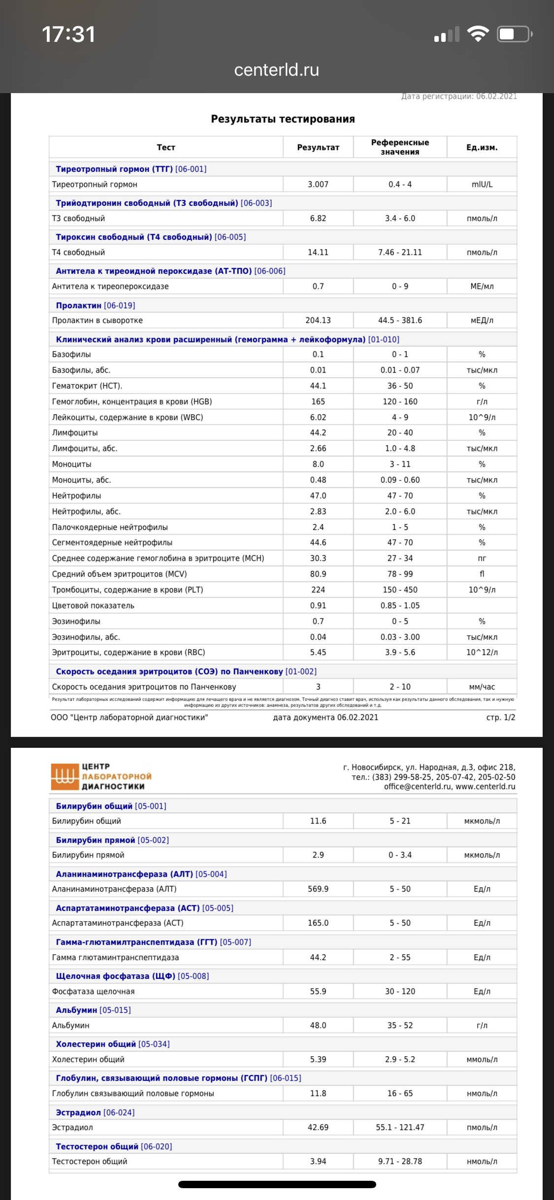 [DOUBLEPOST=1612441803][/DOUBLEPOST]Мужики, подскажите как пить дальше анастрозол? До этого пил по 1 табл через день. Так и продолжать пить анастрозол по 1табл. через день или загасить эстро,начав пить по 1 табл каждый день? Сижу на сусте 500/неделю + турик 40/каждый день. Во вложении анализы, которые сдавал на 3-ей неделе перед началом приема анастрозола и на 5 неделе для корректировки дозы анастразола.
