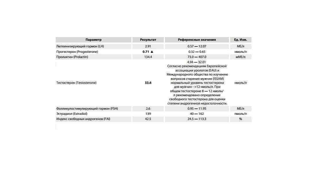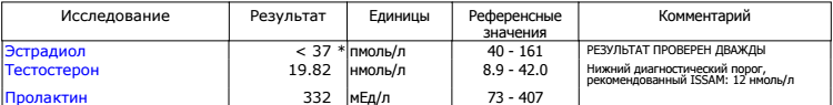 ТТГ, Т3, Т4, АТПО, ФСГ, ЛГ, Тестостерон общий, Пролактин, Прогестерон, Эстрадиол, ГСПГ.