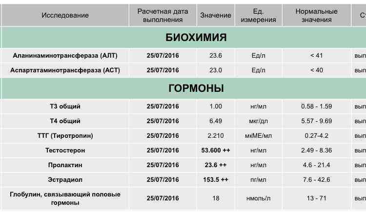 Анализы до, во время, после курса и пкт