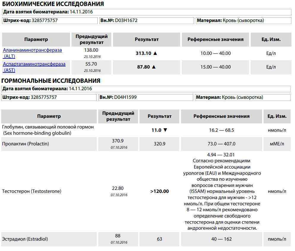 По прошествии 3-х недель сдал анализы (во вложении). Анализы в динамике - до курса и соответственно на данный момент. SUSTANON рабочий, по анализам видно и добавить особо нечего. BOLDENONE пока не понял, но, судя по анализам, эстрадиол он прибивает неслабо, суставы заскрипели, по ОАК есть вопросы, буду смотреть в динамике (начал принимать аспирин 100мг/день)! TURANработает, рабочие веса подросли, мышцы стали тверже, ГСПГ стремится к нулю, но по печени и за эти 3 недели удар нанесен заметный, пришлось отменить. На начало курса вес 86,0 – 86,5кг, сейчас 90,0-90,5кг.