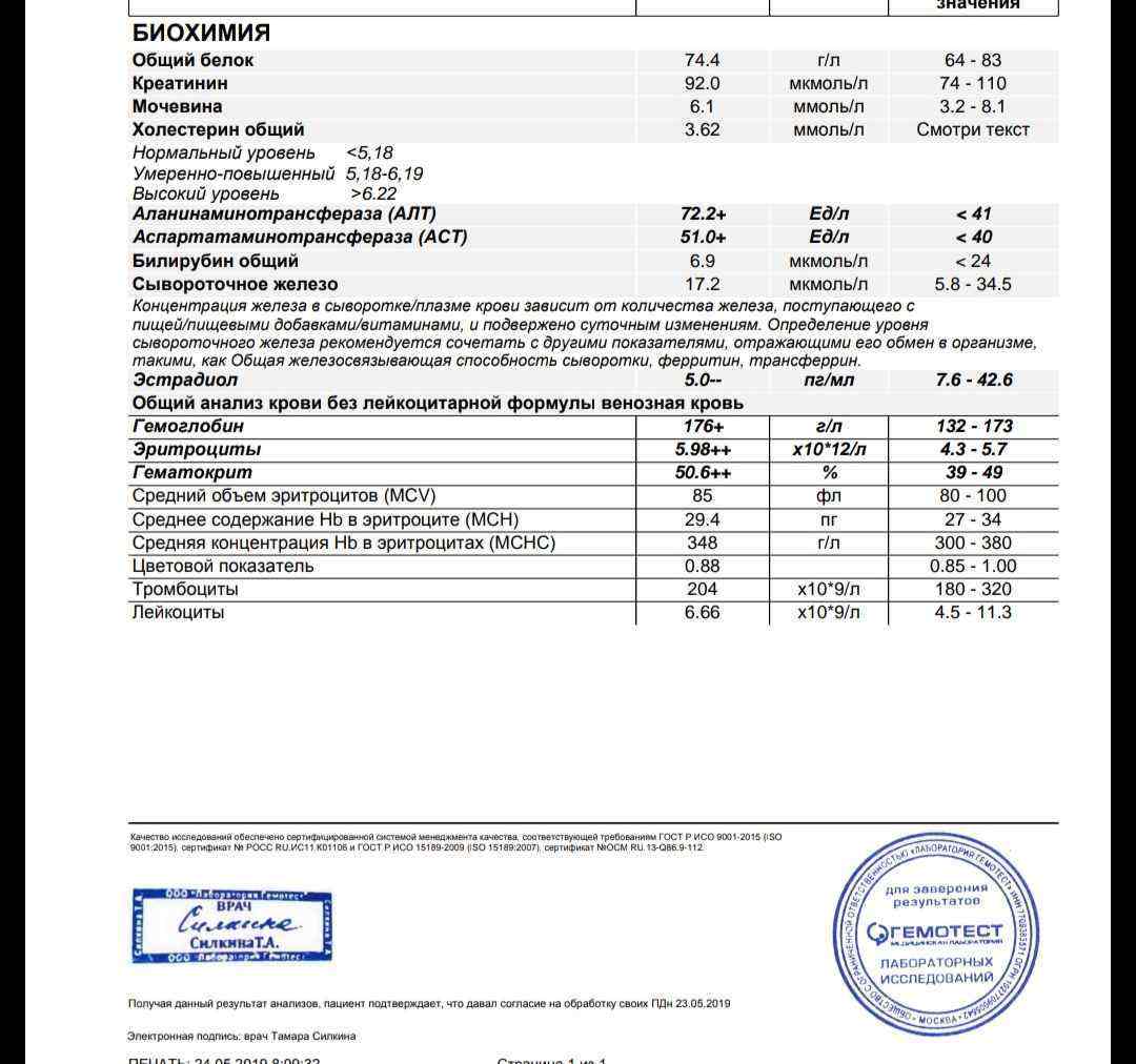 Здравствуйте товарищи. Сдал анализы(прикрепляю ниже) на курсе тест э 250/5 дн + мастерон 250 мг/5 дн. + 1 мг летро/день. Прошлые анализы(выше картинка) были с железо проблемы. Железо не пью уже месяц. Расшифруйте пожалуйста. Некоторые показатели шалят.