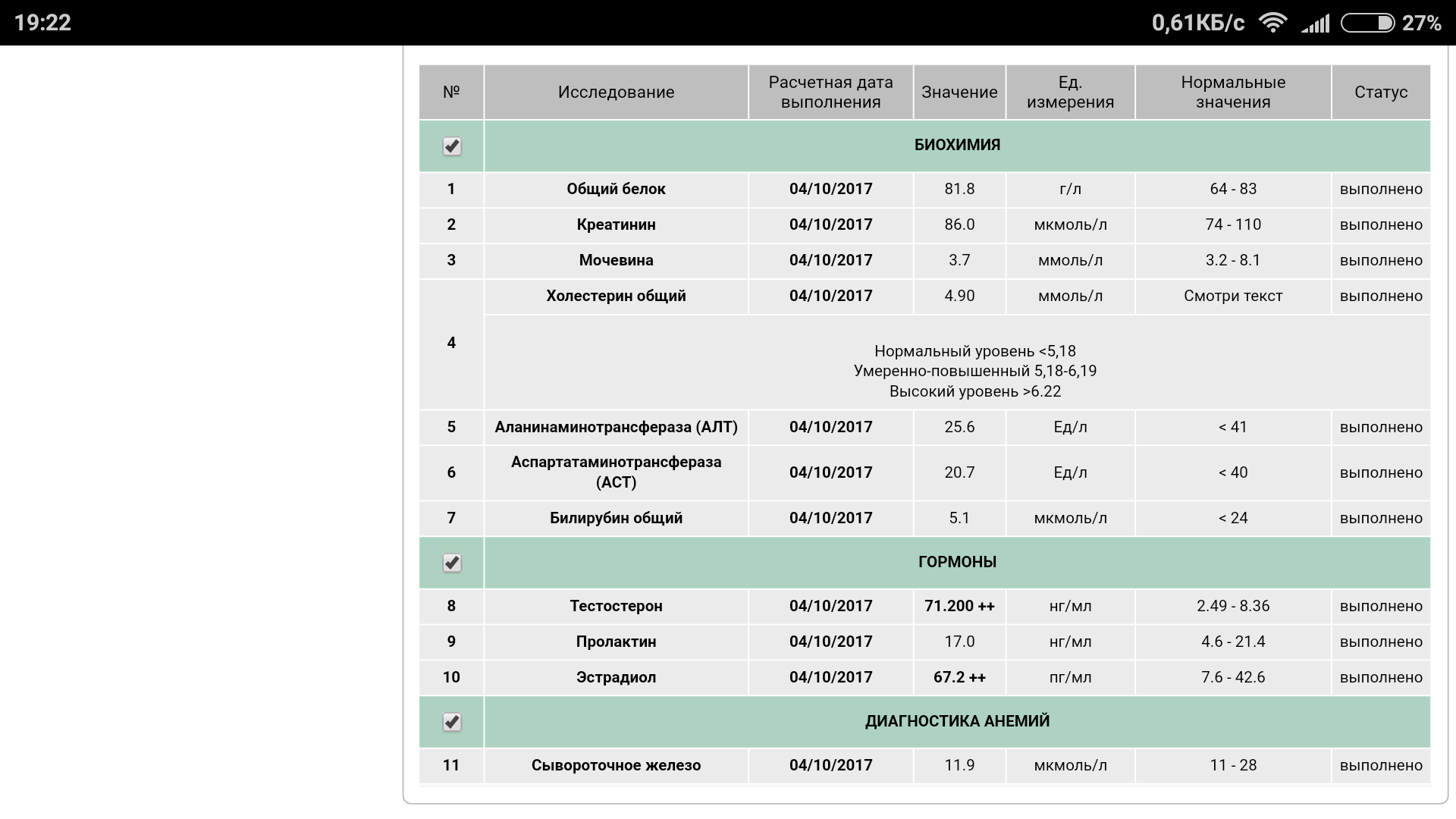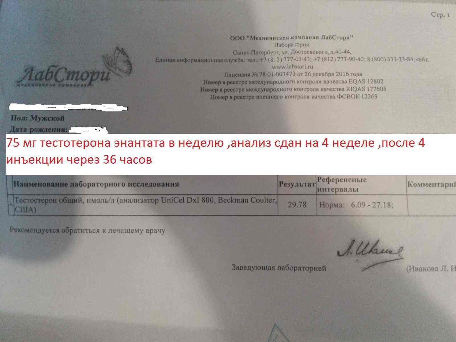 Скину свои анализы. Курс уже идет длинной 18 недель. Тест энантат ставится по 750 в неделю + болд Унд. 1000 в неделю+ трен энантат 400 в нед (10 недель всего).
