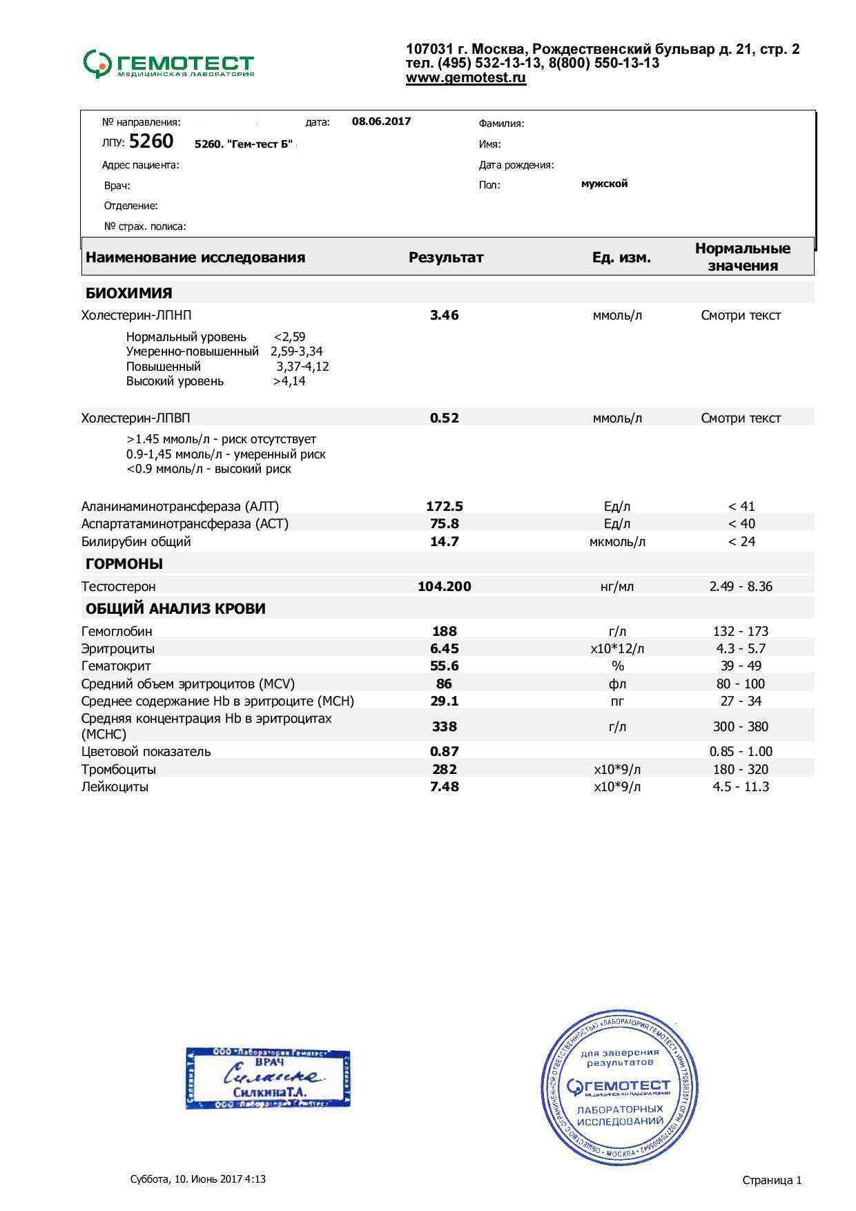 Здравствуйте. Вот мои анализы. 1,5-2 месяца 750 мг в нед. Плюс дека метан (др. произв.) Ещё раз спасибо за качественную продукцию)