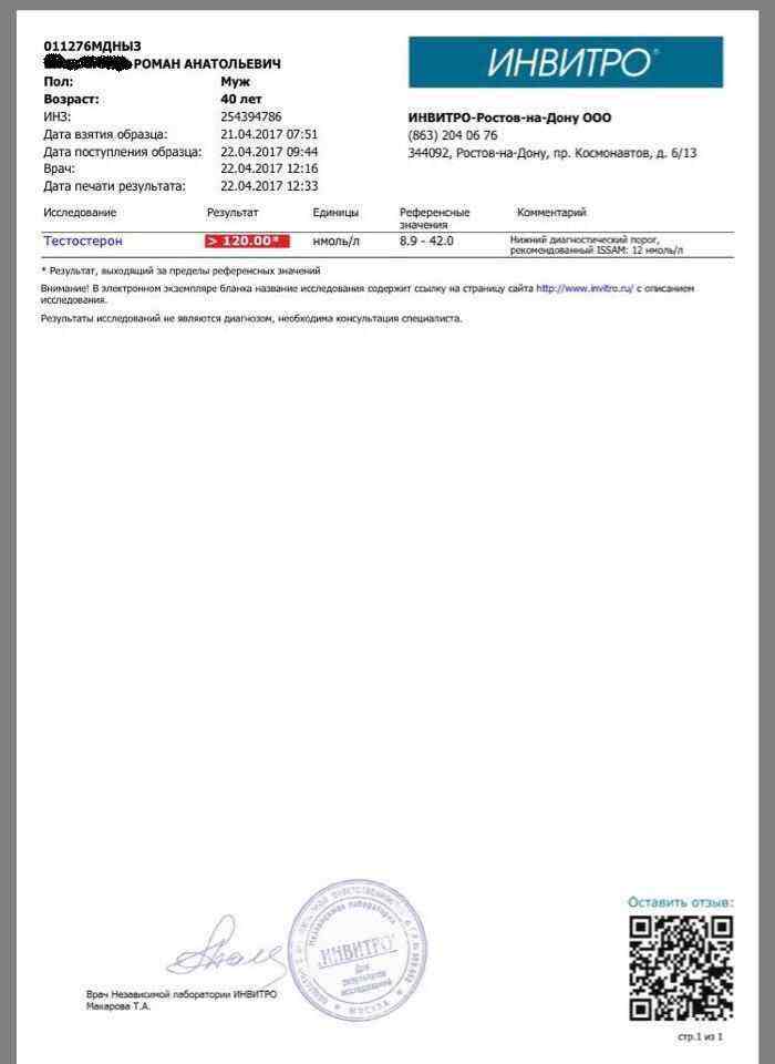 Результат: 220.1389 нмоль/л для 500 мг/нед. Я считаю, что результат более чем достойный!