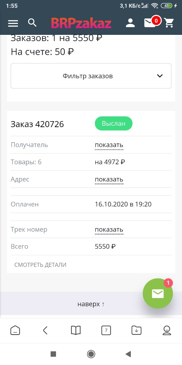 Оплатил заказ 21.10.20 и забрал уже 28.10.20 на почте.