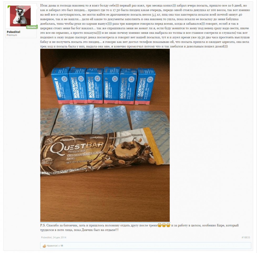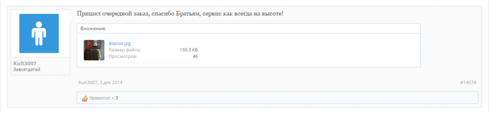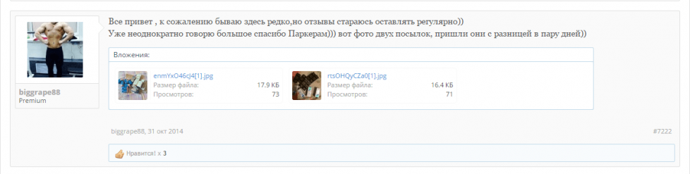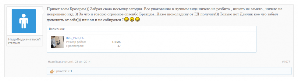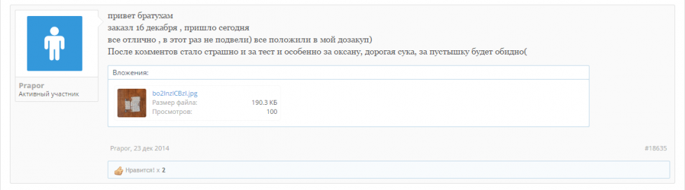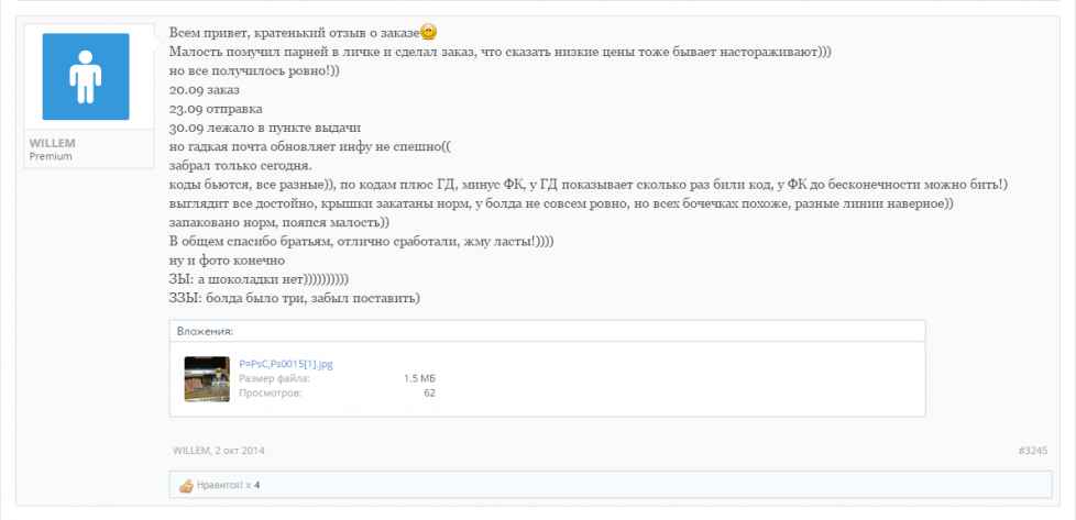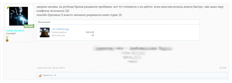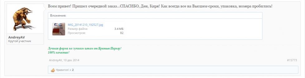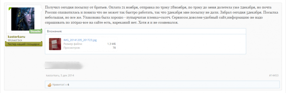Салам Алейкум всем форумчанам. Вот пришёл мой заказ, очень рад тому что все делается оперативно, деньги моментально залетают на лицевой счет, срок доставки не может не радовать, посылка пришла в солнечную Адыгею за 6 Дней. Желаем вам удачной работы, много заказов, хороших адекватных клиентов в вашей нелёгкой работе, и самое главное - пополнение ассортимента каждый раз, короче процветания вам Братья!!!!