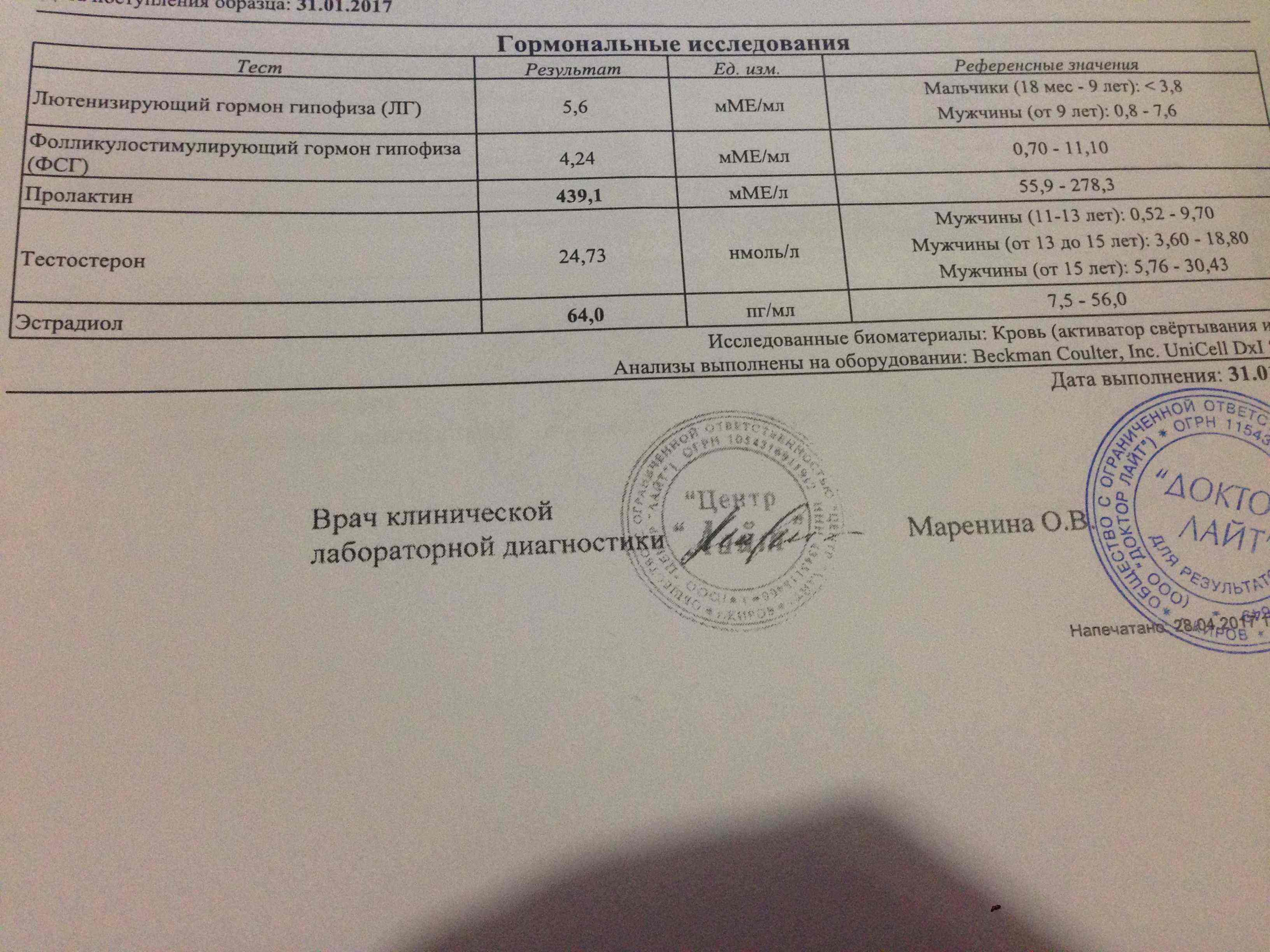Нандралонов не было уже 2 года, а гормоны эти сейчас можно сдавать, если идет курс?А на курсе использовались нандролоны либо тренболоны? И если такой пролактин долго наблюдается то сдай обязательно ТТГ и т4 свободный пожалуйста, может быть прореха там..